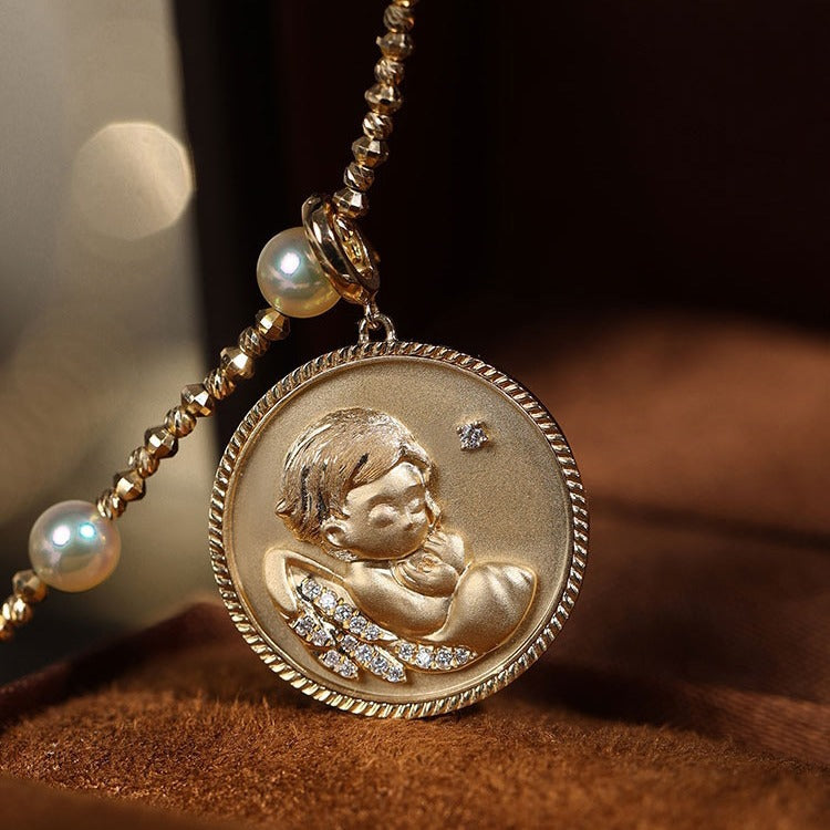 This Angel Guard Sterling Silver K Gold Plated Lucky Coin Pendant Bracelet Set is a beautiful accessory that combines fashion and guardianship. It is made of sterling silver and uses high-level mic-level post-gold plating technology to ensure the durability and glossiness of the gold.