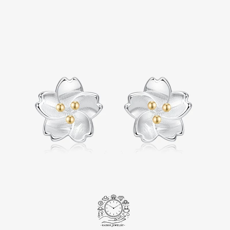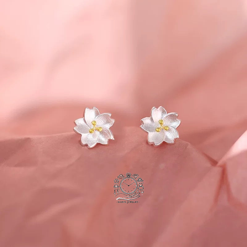 Intricate Design: Each stud features a delicate cherry blossom with a golden center, highlighted by three yellow dots for a refined finish.