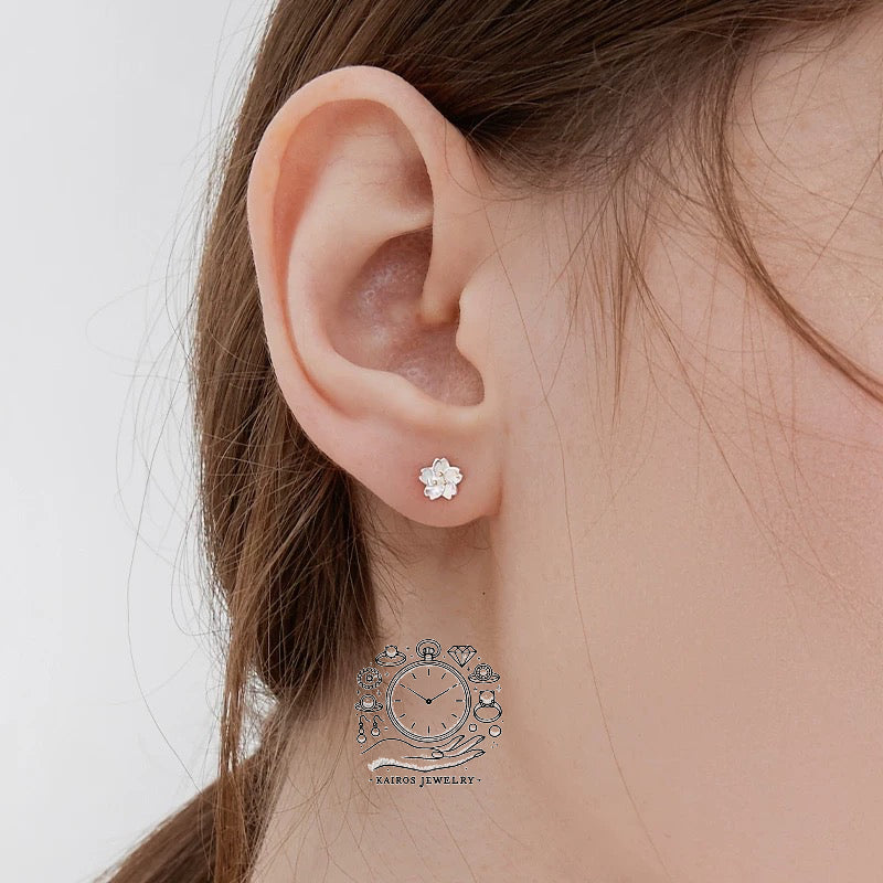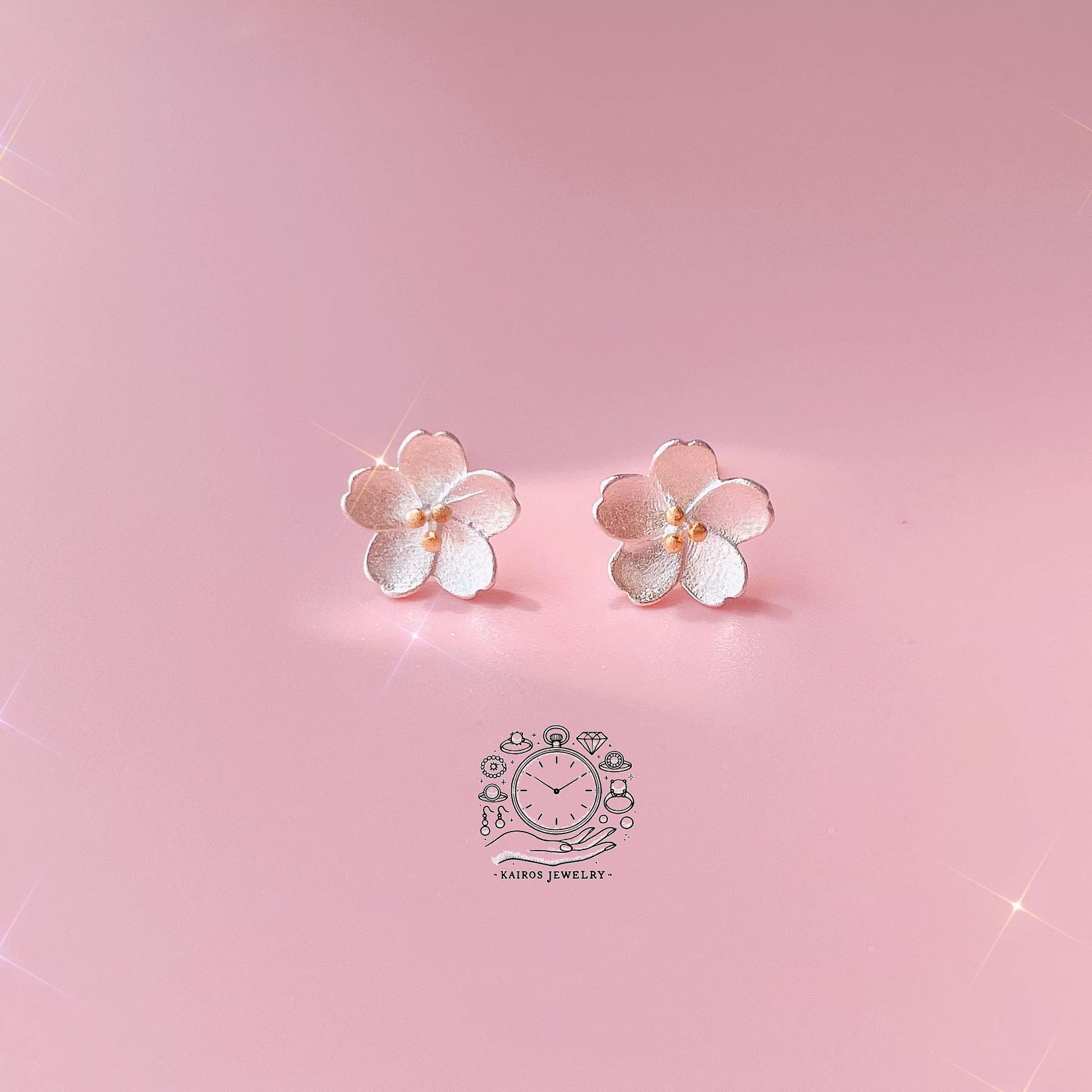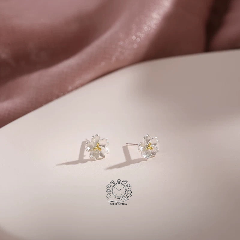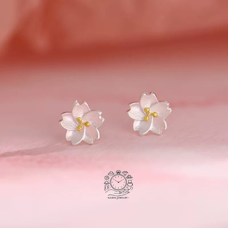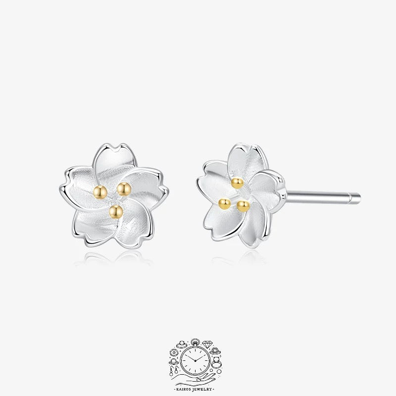 Embrace the timeless allure of sterling silver and the delicate symbolism of cherry blossoms with these exquisite stud earrings—a harmonious blend of style and serenity.