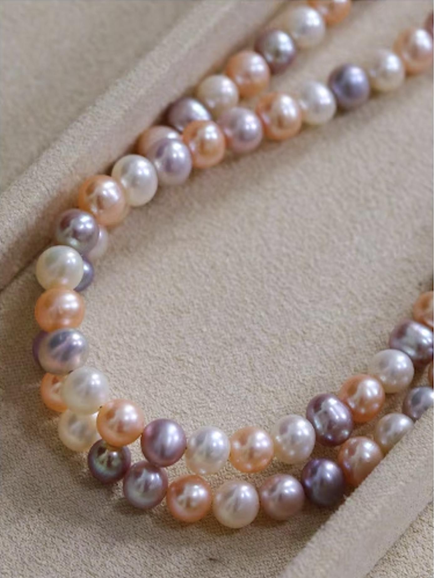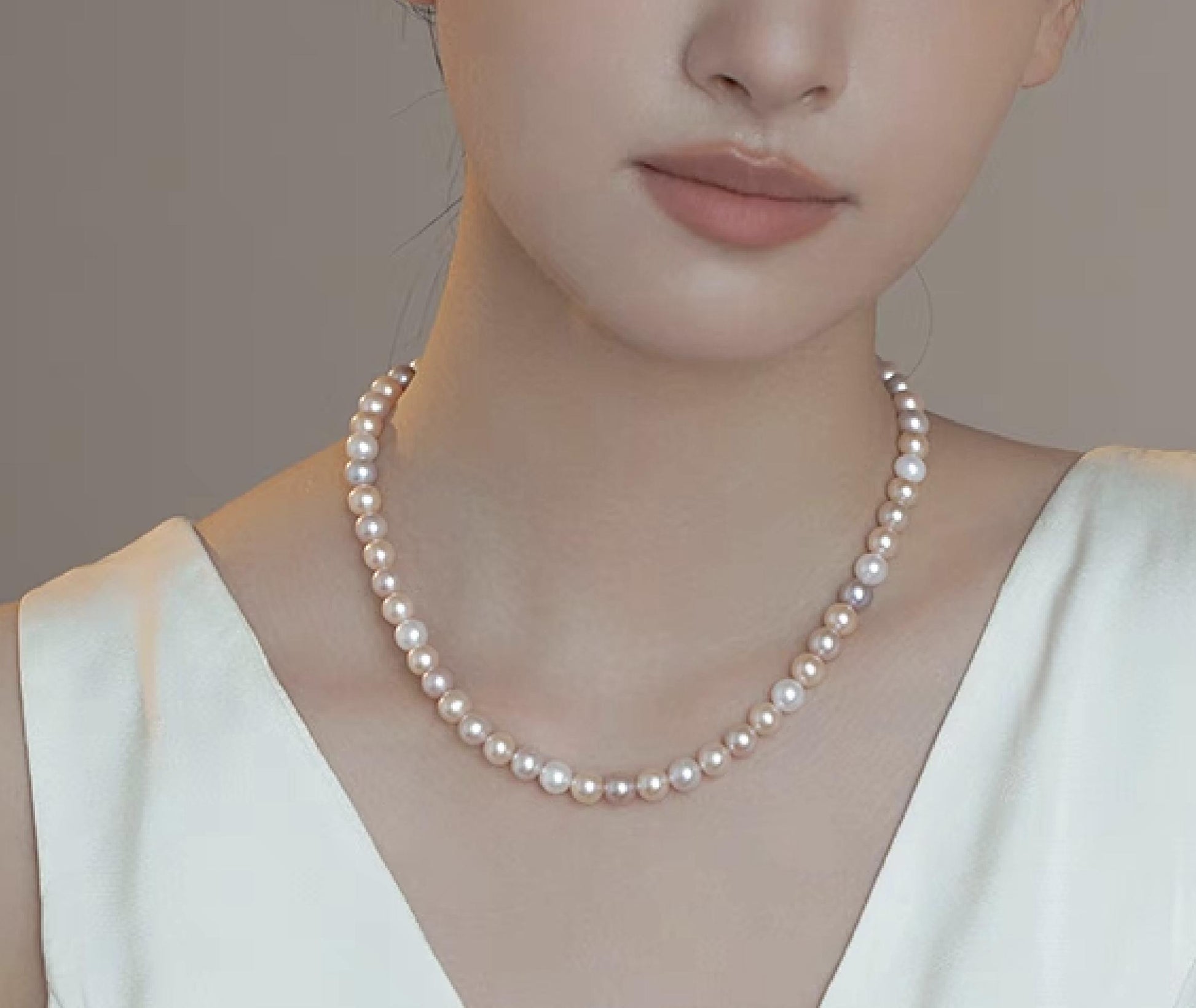Pearl Type: Freshwater nucleated-free (near-round) pearl necklace