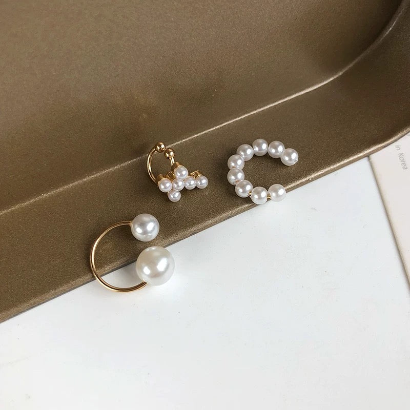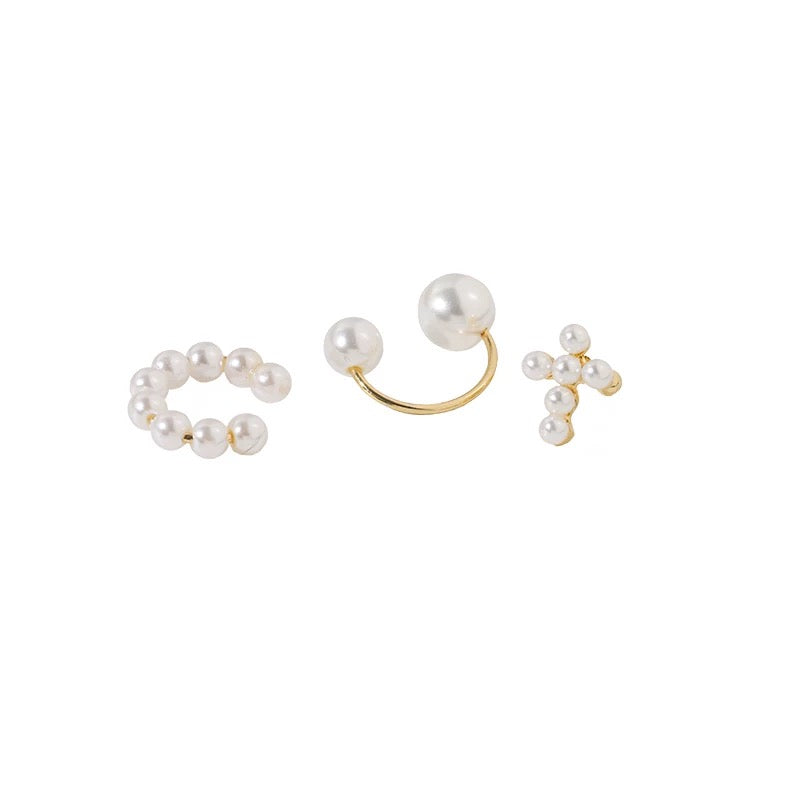 Product Description: Faux Pearl Alloy Cuff Earring (Set of Three)