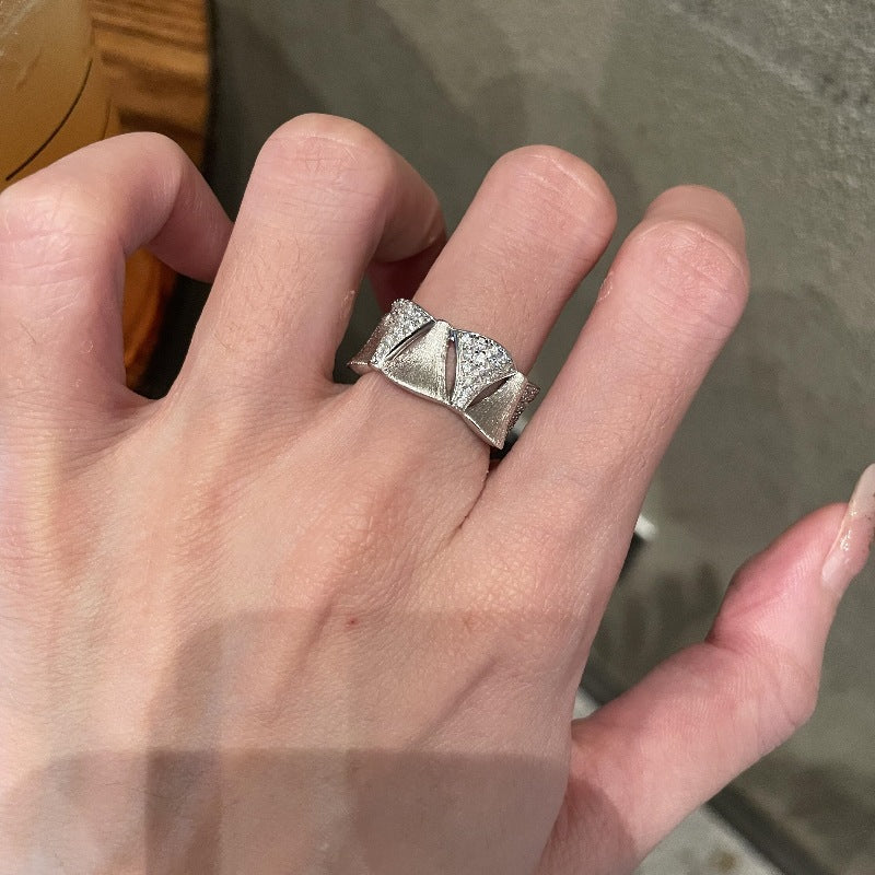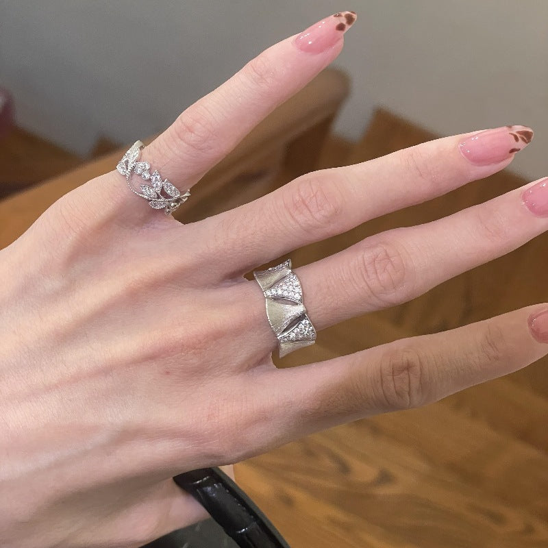 French light luxury Italian medieval style ginkgo leaf diamond brushed ring irregular design niche simple hand jewelry
