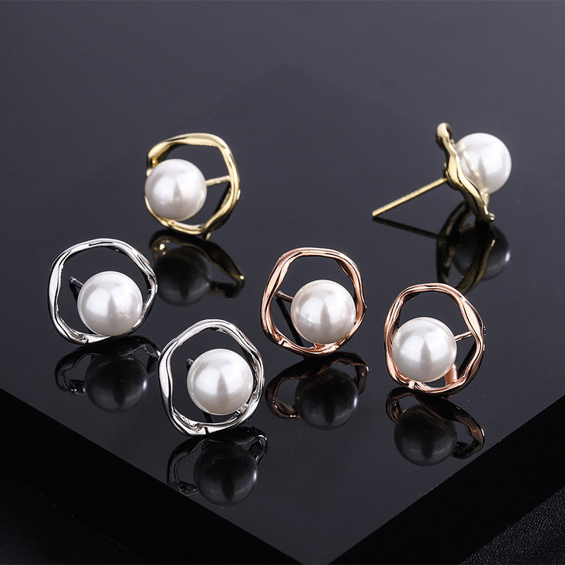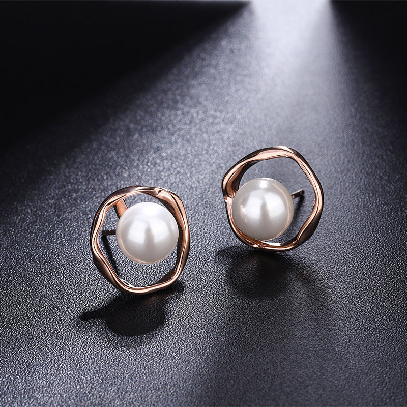 HETICA 925 Sterling Silver White Pearl Stud Earrings, Specially Designed Curved Petal Pearl Earrings for Wedding Bridesmaid, Everyday Costume Jewelry Earrings