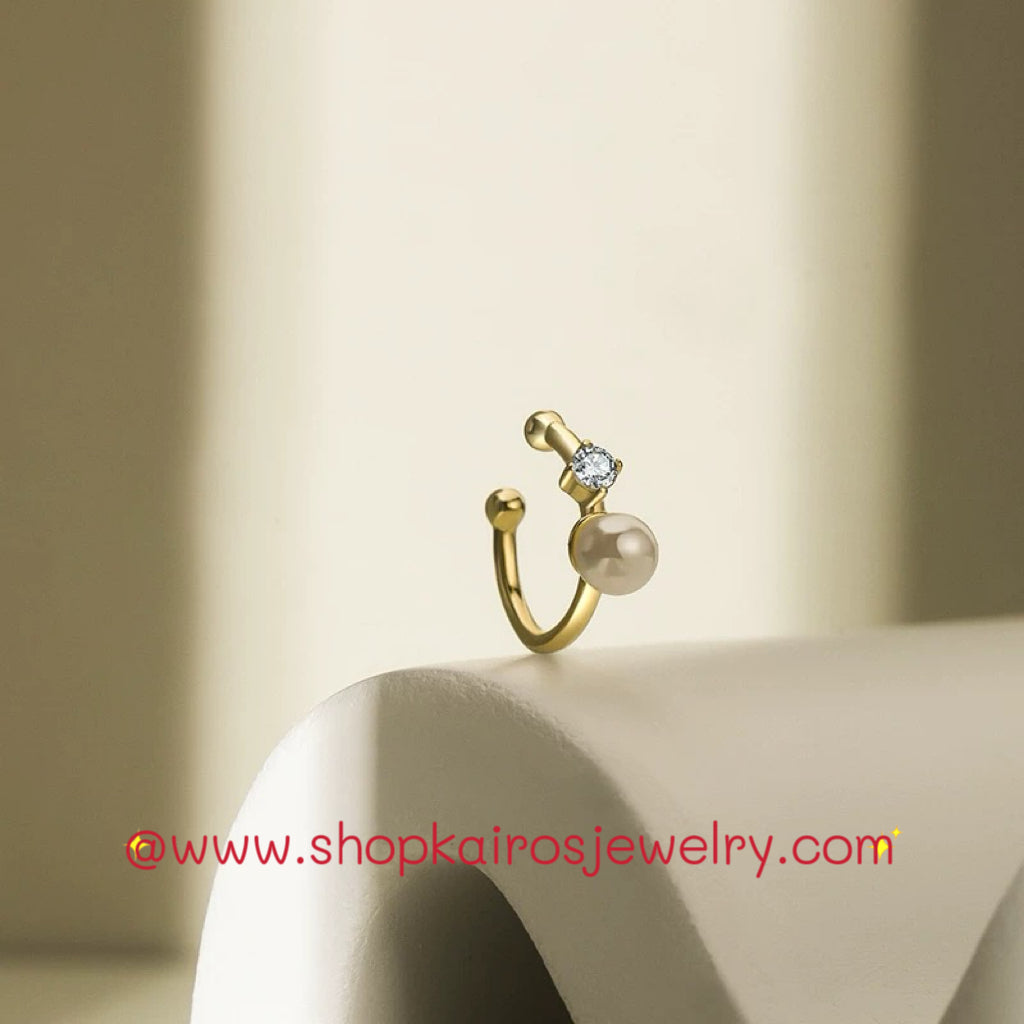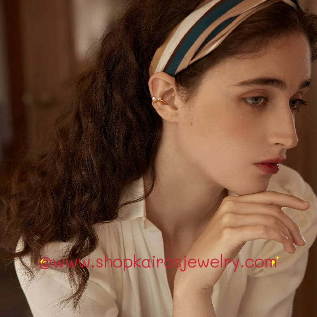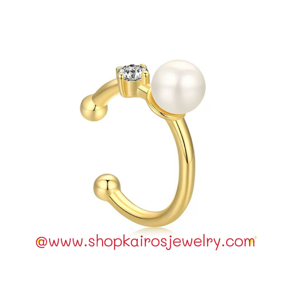 Kairos Sterling Silver Golden Plated Pearl Ear Cuff, No Piercing, Women's New High-End French-Style Luxury Earrings, Ear Hook, Ear Bone Clip