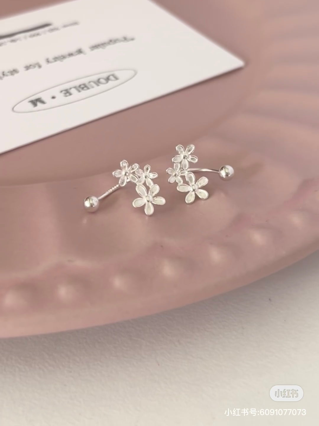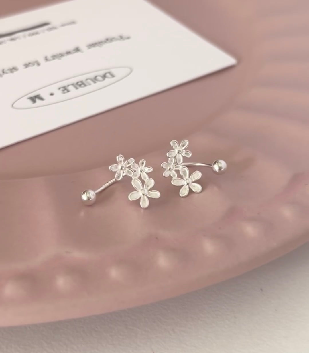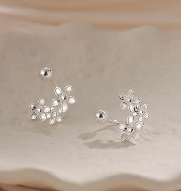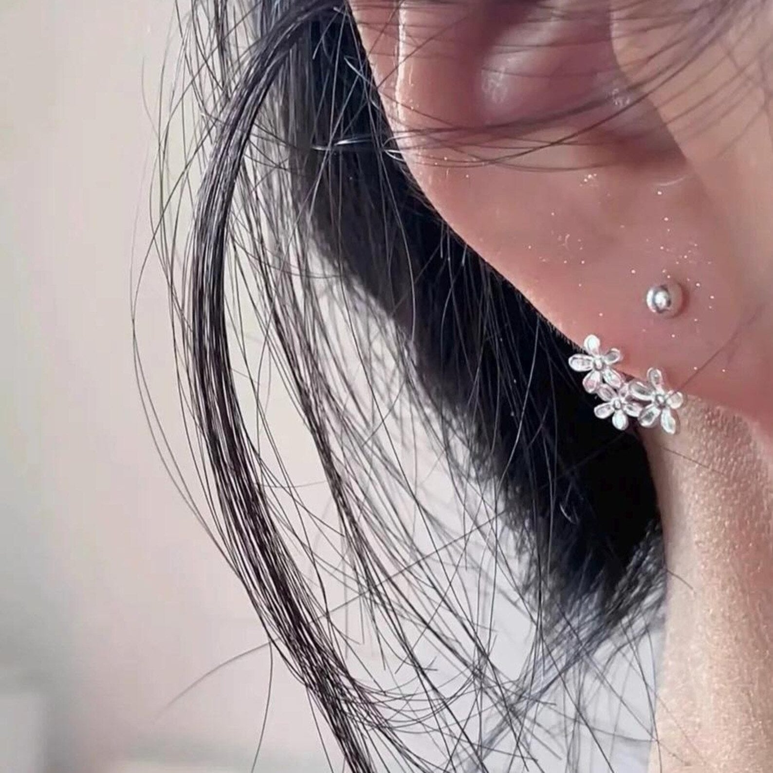 Minimalist S999 Silver Flower Earrings for Women - Stylish and Versatile Ear Cuff Studs with Unique Screw-In Floral Design