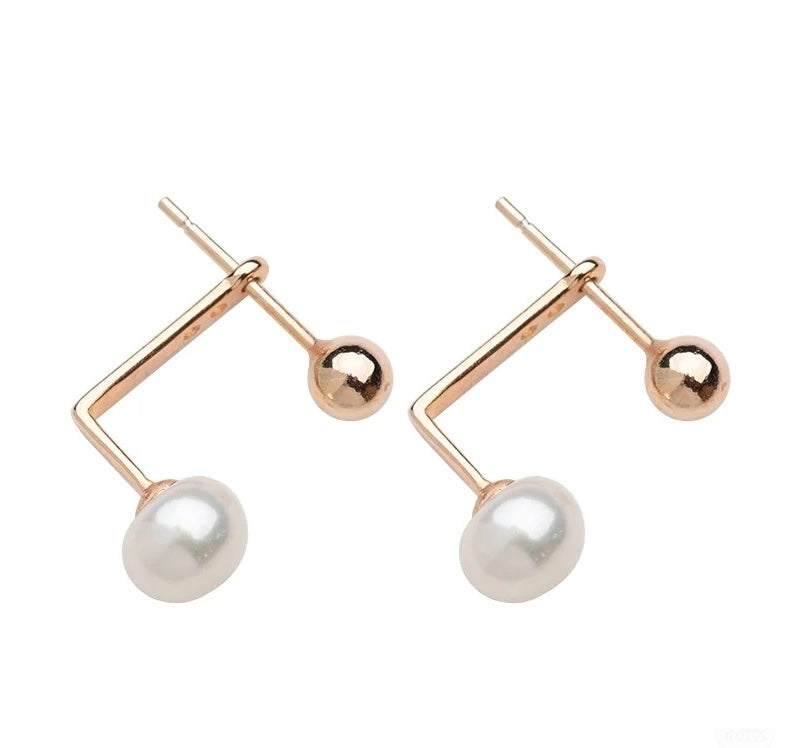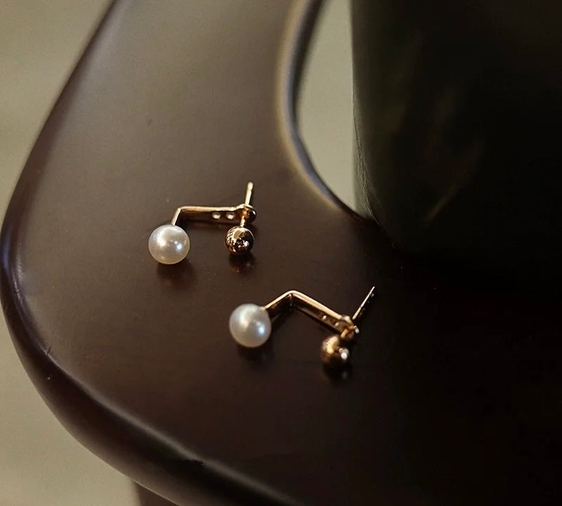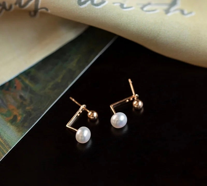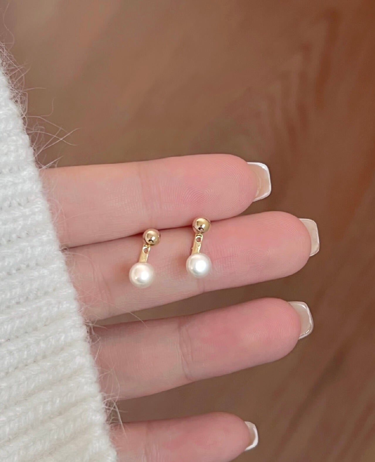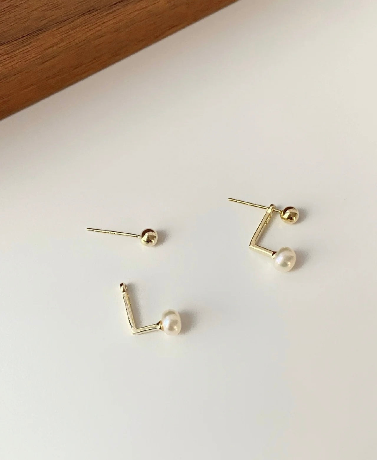 Modern Minimalist Gold Pearl Stud Earrings – 14K Gold & Sterling Silver Design | Gift for her | two wearing ways