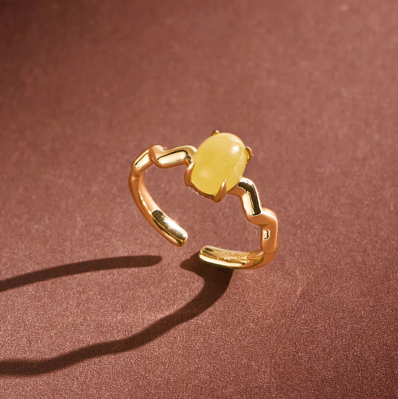 Natural Amber Ring for Women β Wave Design Open Band Gemstone Index Finger Ring