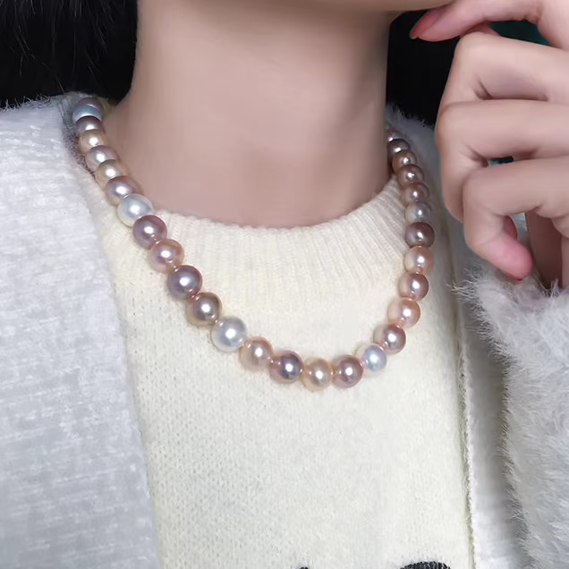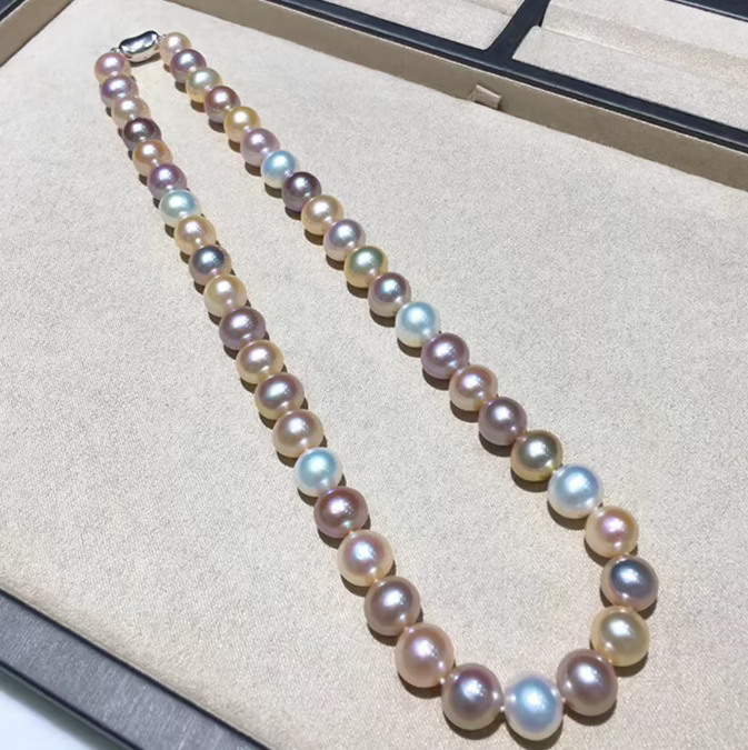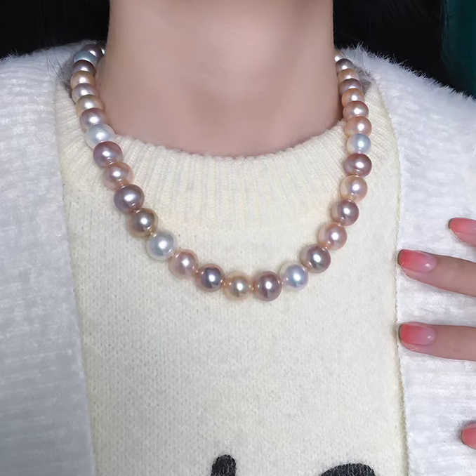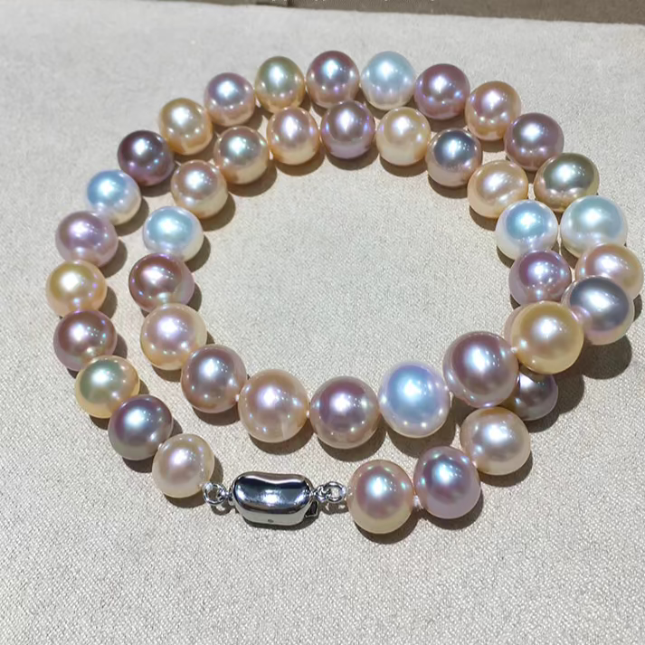 Natural Freshwater Multicolor Pearl Necklace for Women – High-Luster Candy-Colored Mirror-Finish Choker with Slight Natural Blemishes