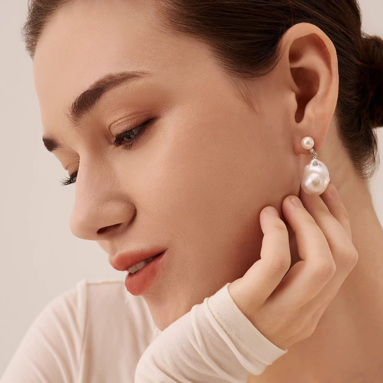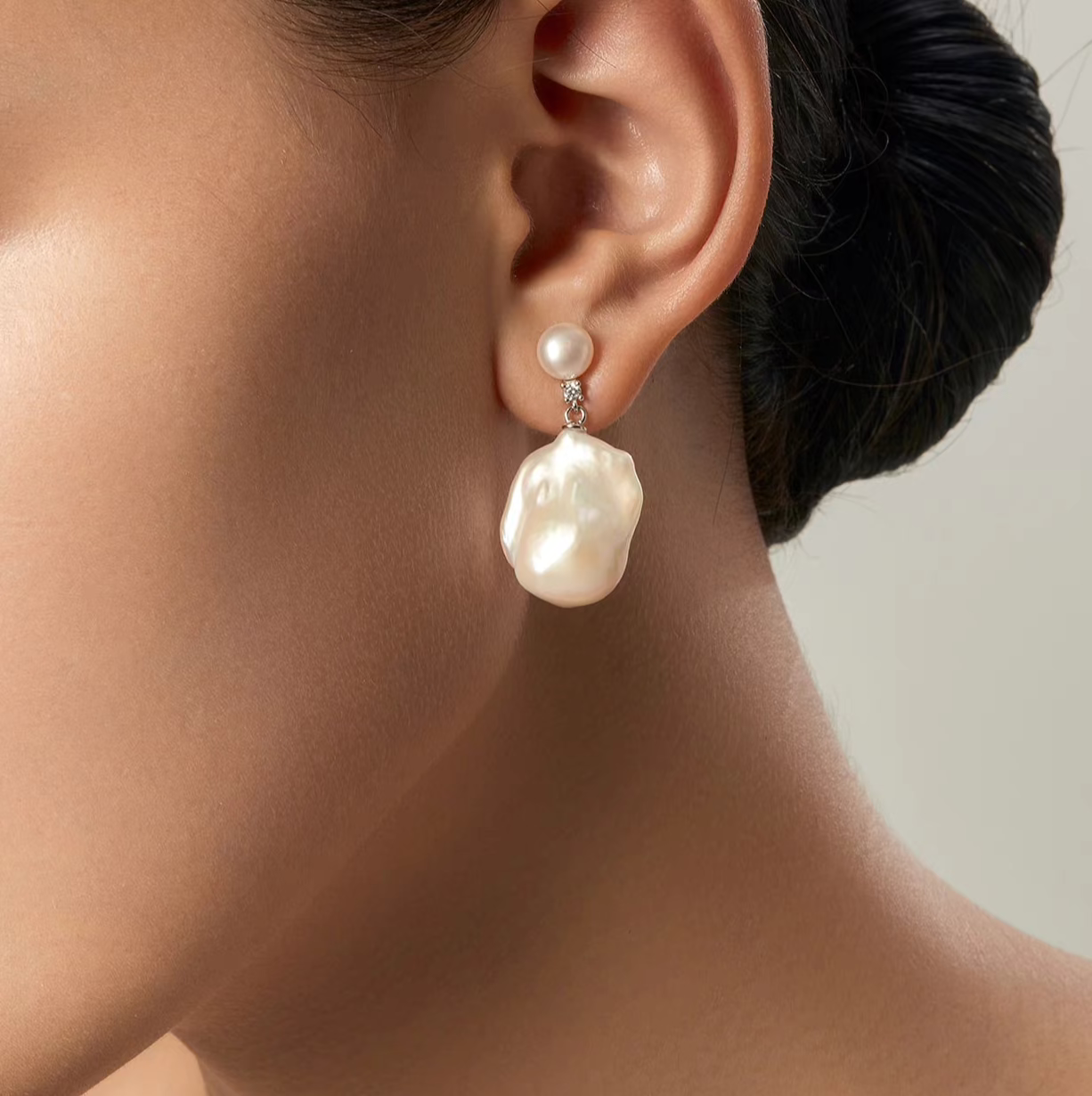 Natural Large Baroque Pearl Earrings – Unique Designer Drop Earrings for Women, Elegant Light Luxury Studs