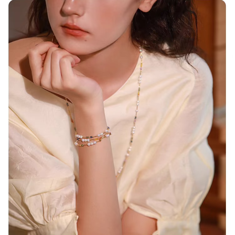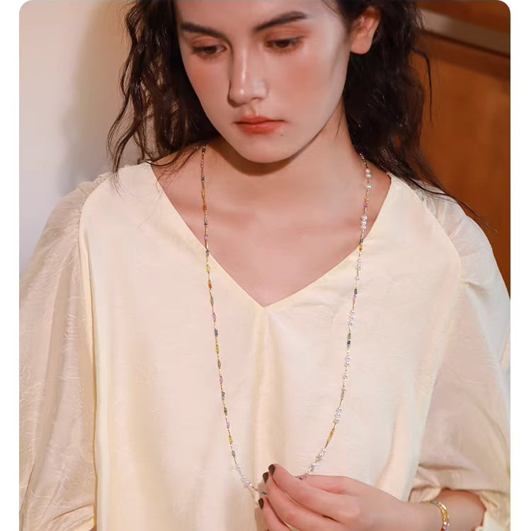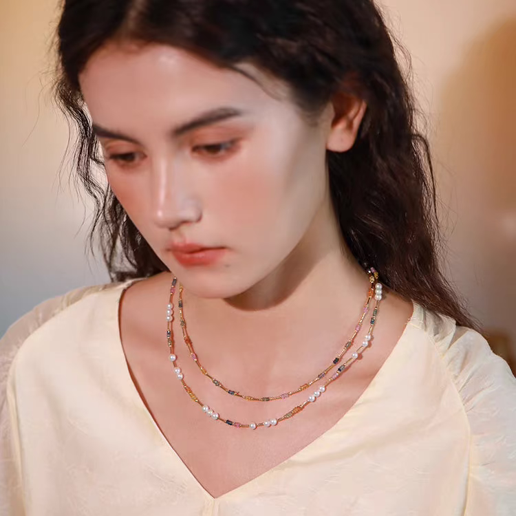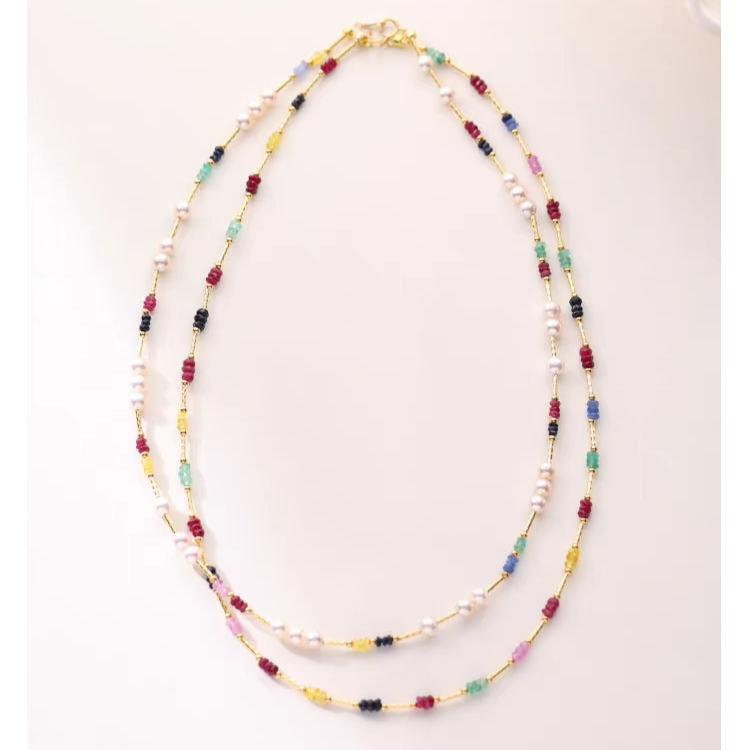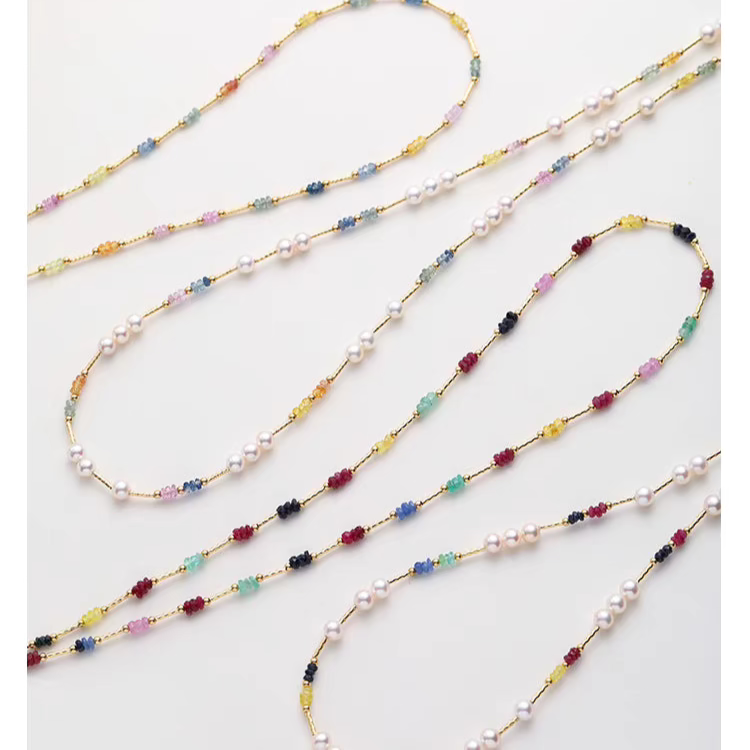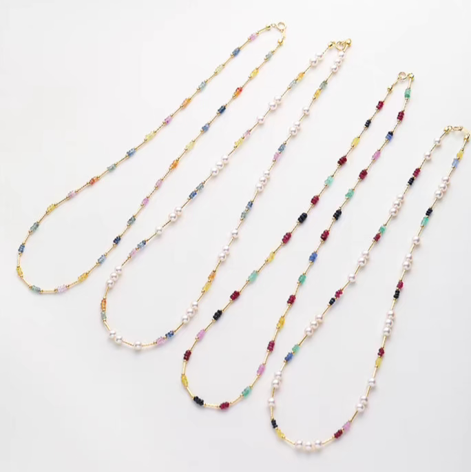 Natural Pearl & Colorful Sapphire Necklace – Summer Dopamine 18K Gold Beaded Collarbone Necklace