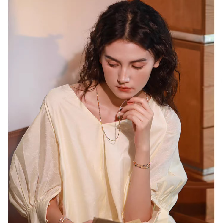 ✨ This necklace is your daily dose of sunshine and sparkle, blending classic elegance with a playful twist of color. Let your mood—and your style—glow all season long.