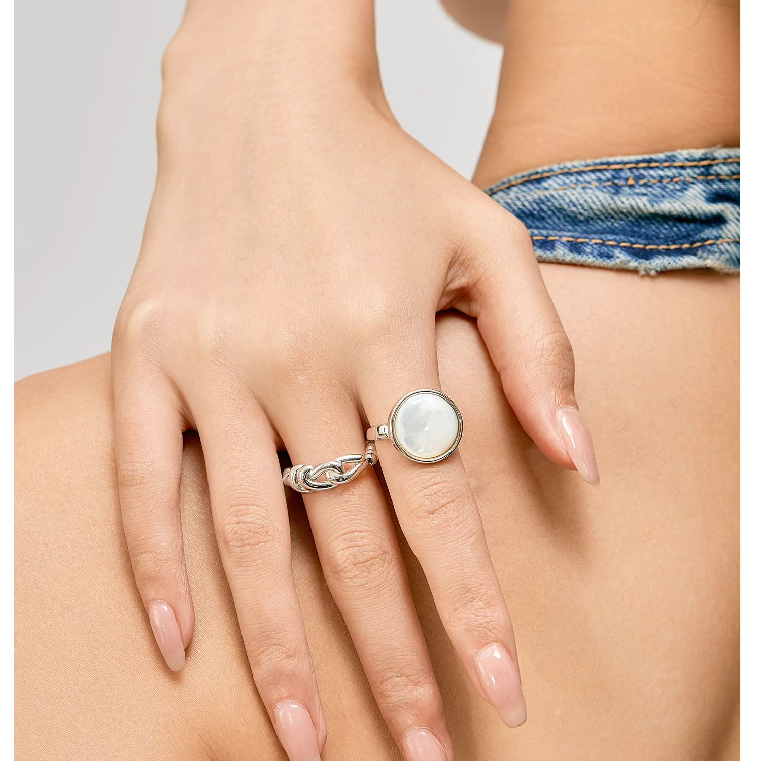 Natural White Mother-of-Pearl Stacking Ring Set with Pearl