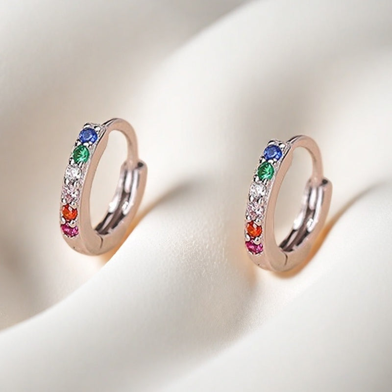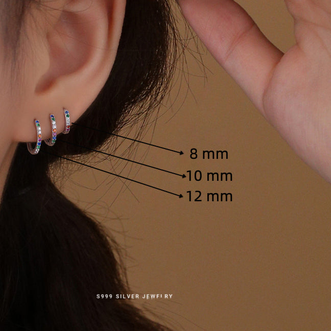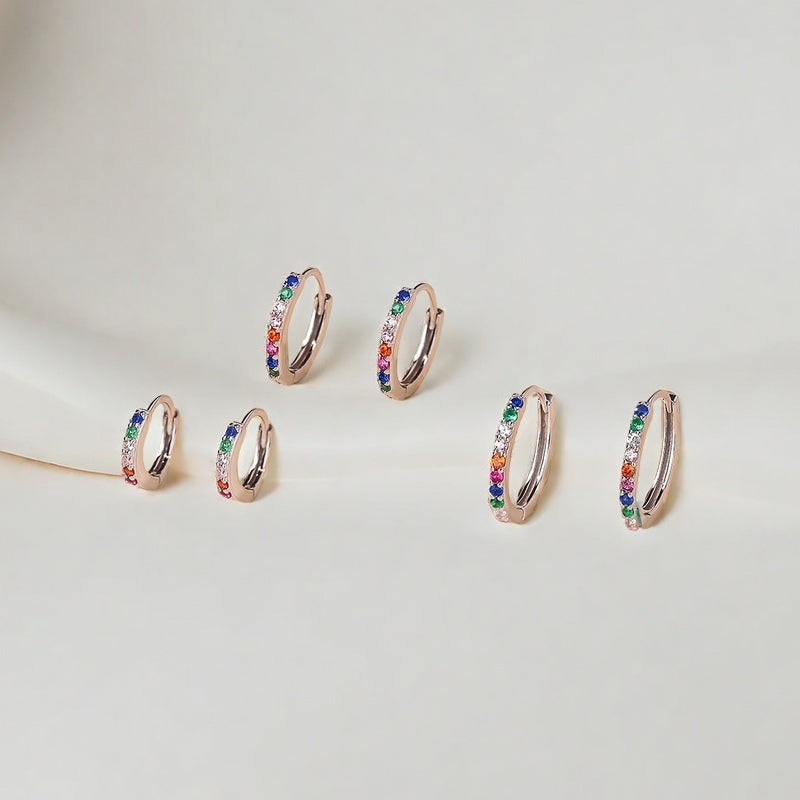 Tiny/Small/Medium Pave Rainbow Huggie Hoop Earrings